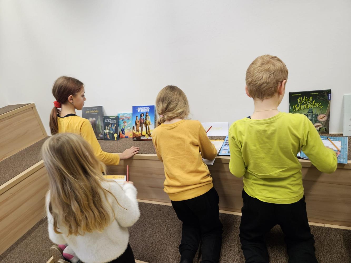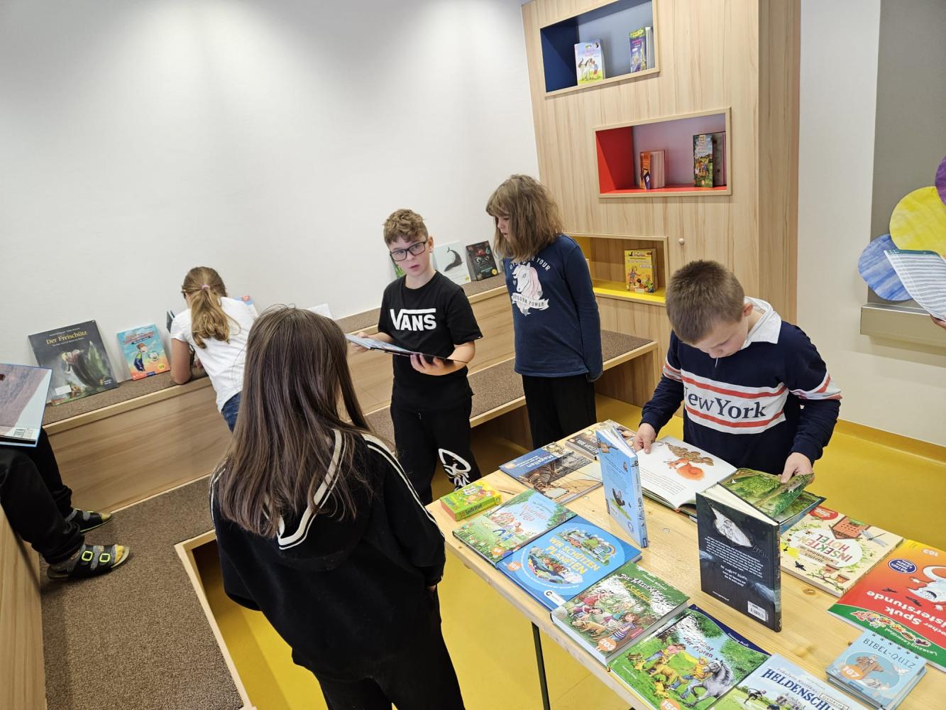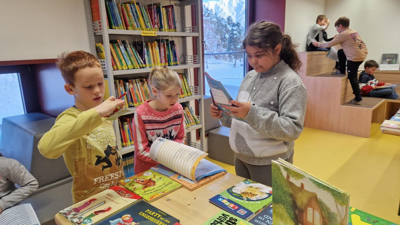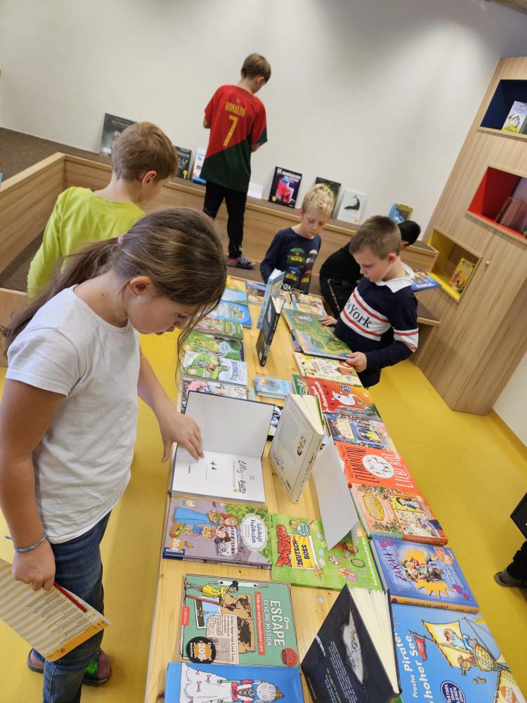 Alle Kinder unserer Schule besuchten vergangene Woche die Bücherausstellung der Firma "Lesewelten" in der Schulbücherei. Die neuen Bücher konnten dabei in Ruhe angeschaut und auf Wunsch auch bestellt werden.