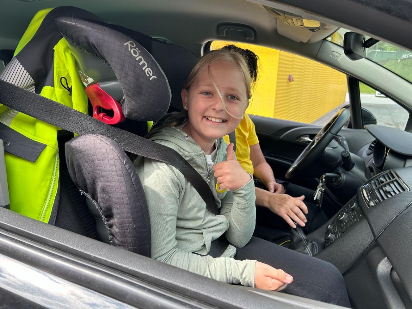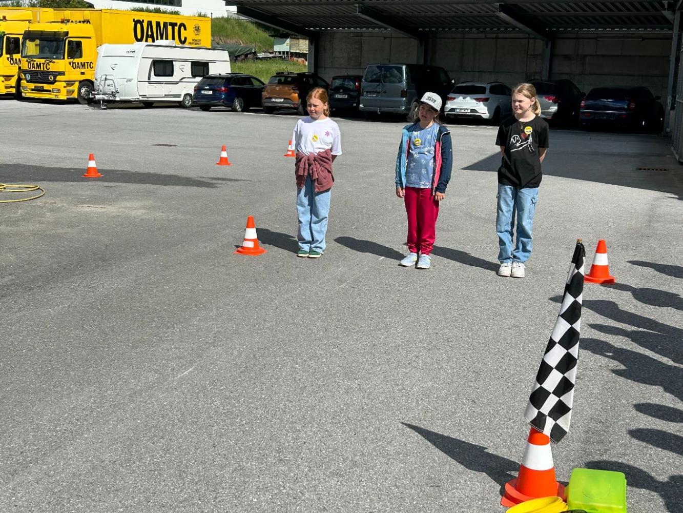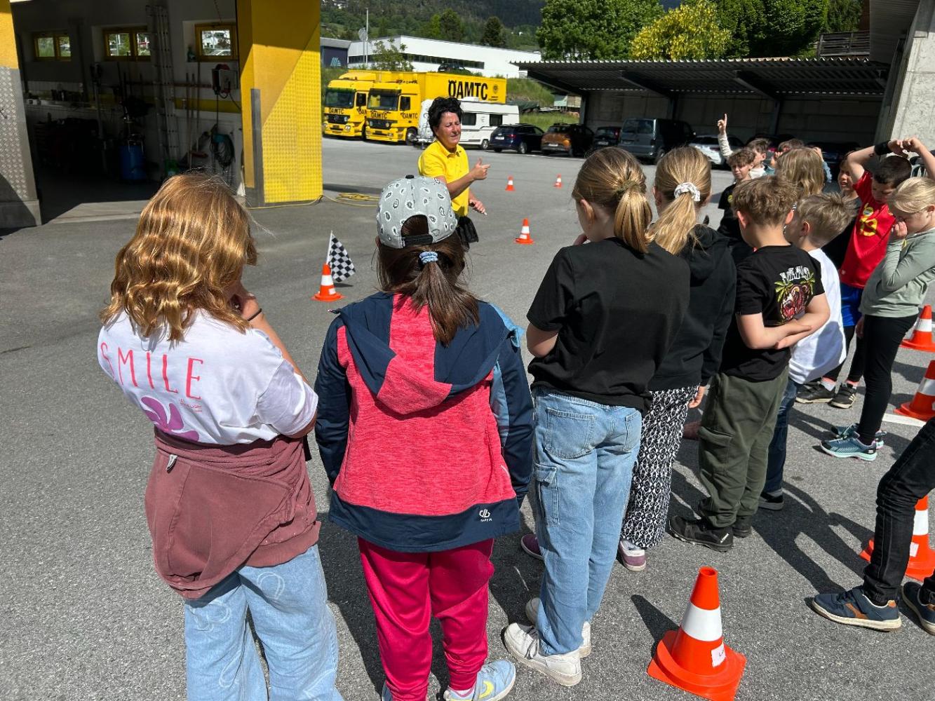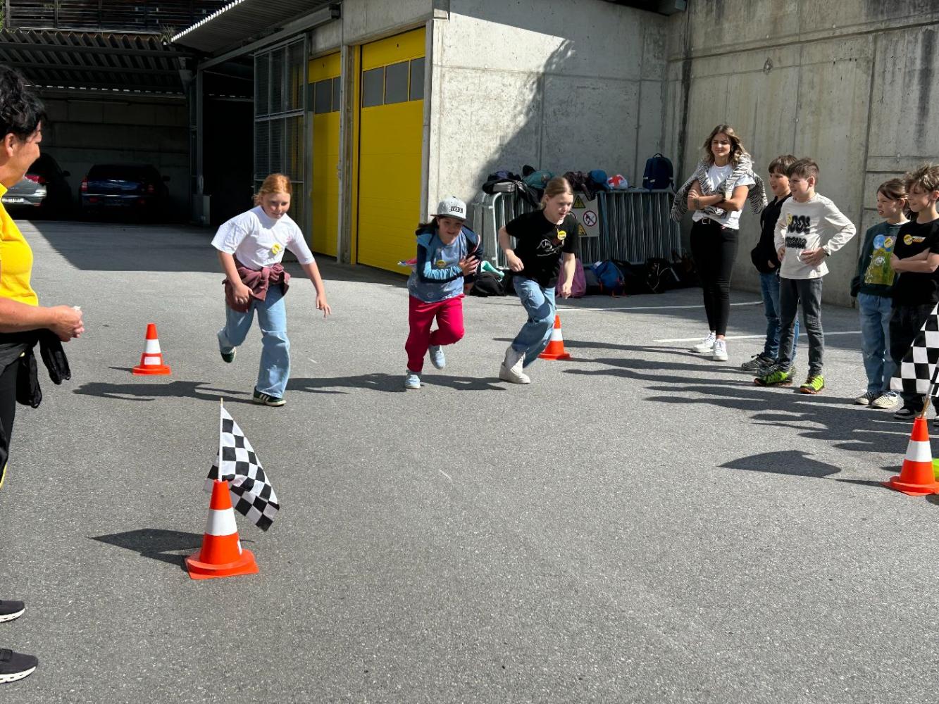 An diesem Vormittag lernten die Kinder durch praktische Übungen, die Geschwindigkeit von Fahrzeugen besser einzuschätzen und die Bedeutung von Reaktions- und Bremswegen zu verstehen. Besonders eindrucksvoll war die Notbremsung, die jedes Kind selbst im Demonstrationsfahrzeug durchführen durfte.