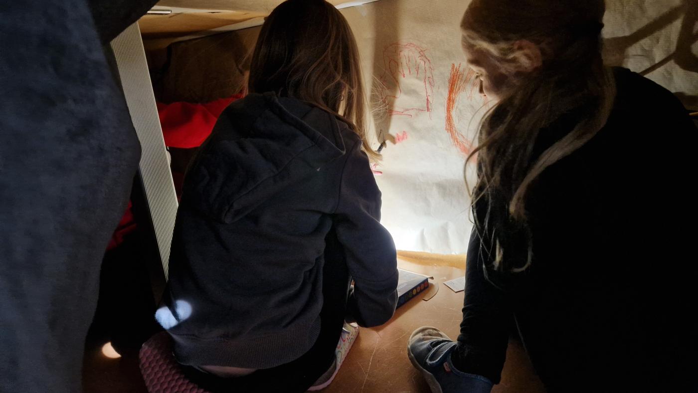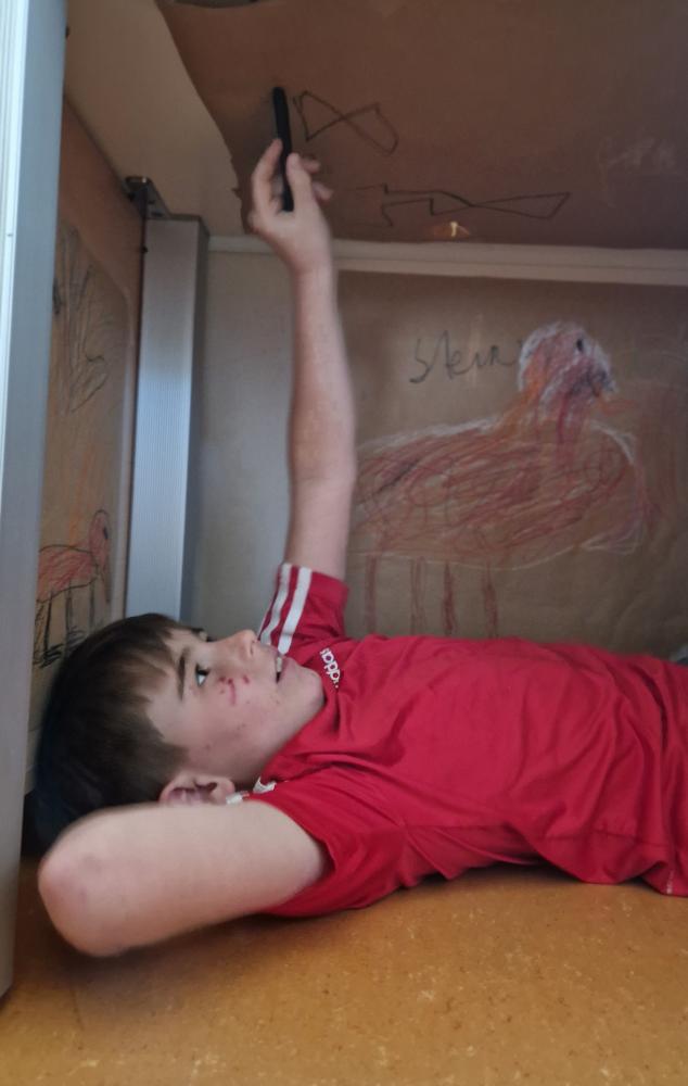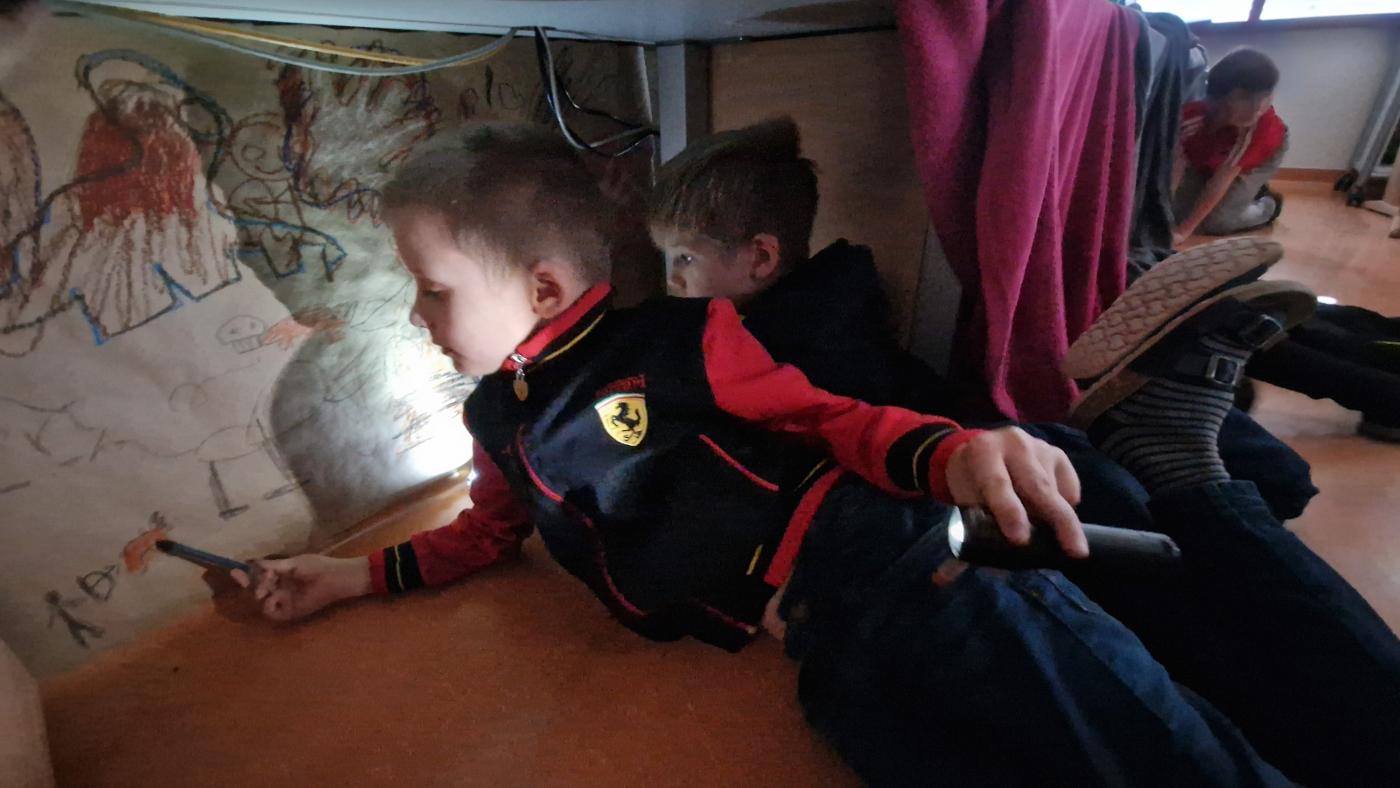 Höhlenmalerei von Antonia Mariani 03. Mai 2023 4a 2024/2025 Die 2a Klasse wurde in eine Höhle verwandelt und die modernen Höhlenmenschen malten ihren Höhlenalltag an die Höhlenwände.