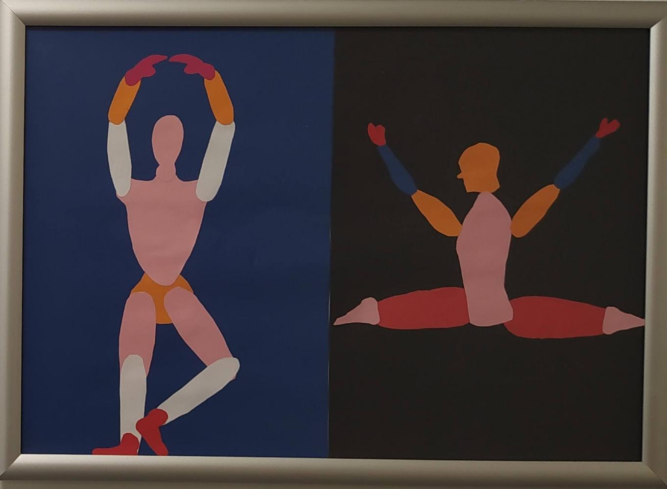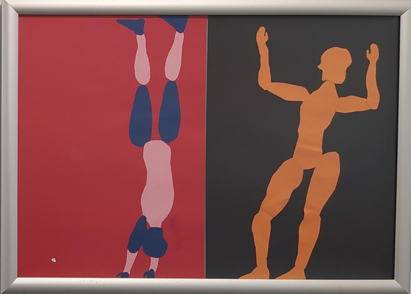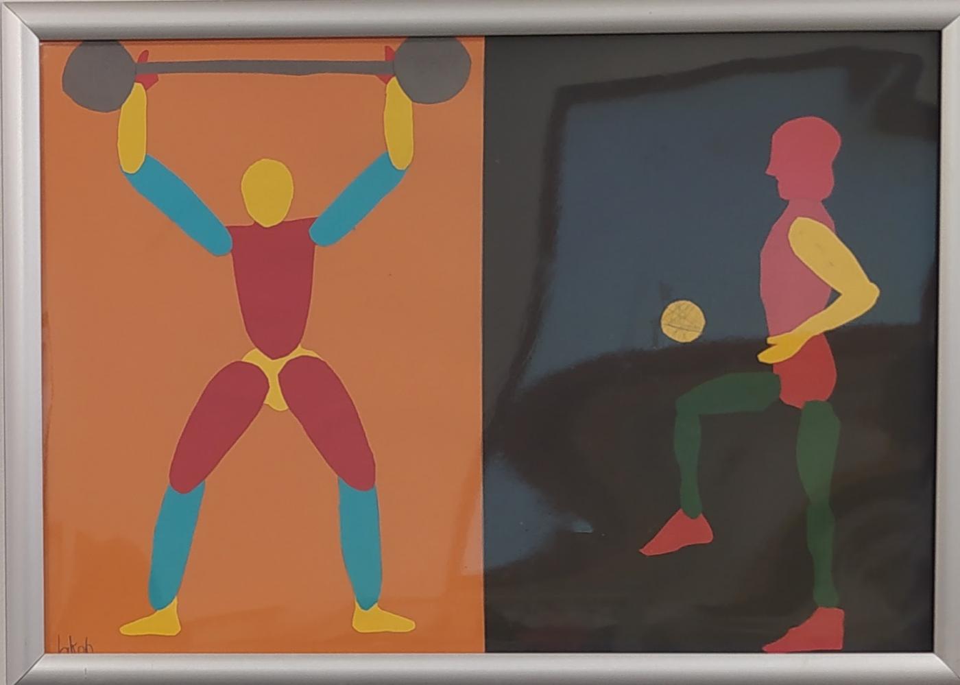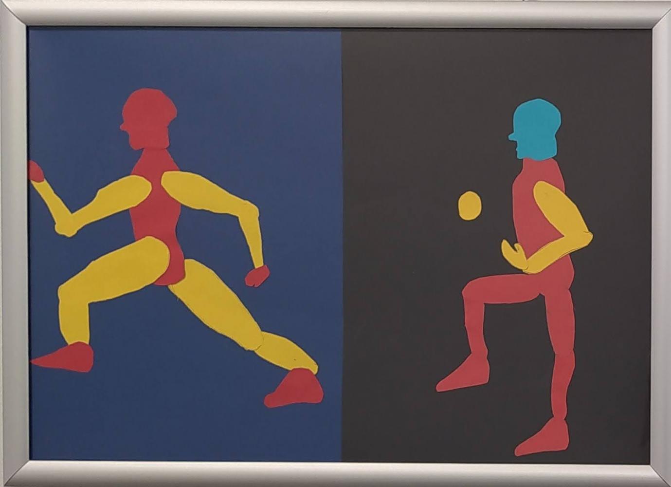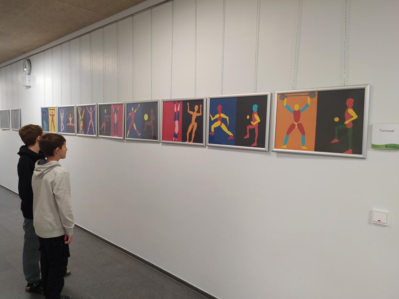 Körper in Bewegung von Simon Krabichler 03. November 2023 4 Die Vierteler haben aus Papier Körperteile ausgeschnitten und zu Körpern zusammengesetzt, die den Eindruck von Bewegung erwecken.Diese sportlichen Figuren passen natürlich gut in den Gang vor dem Turnsaal.