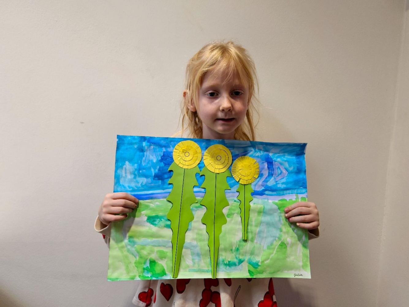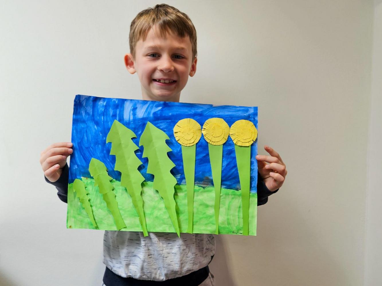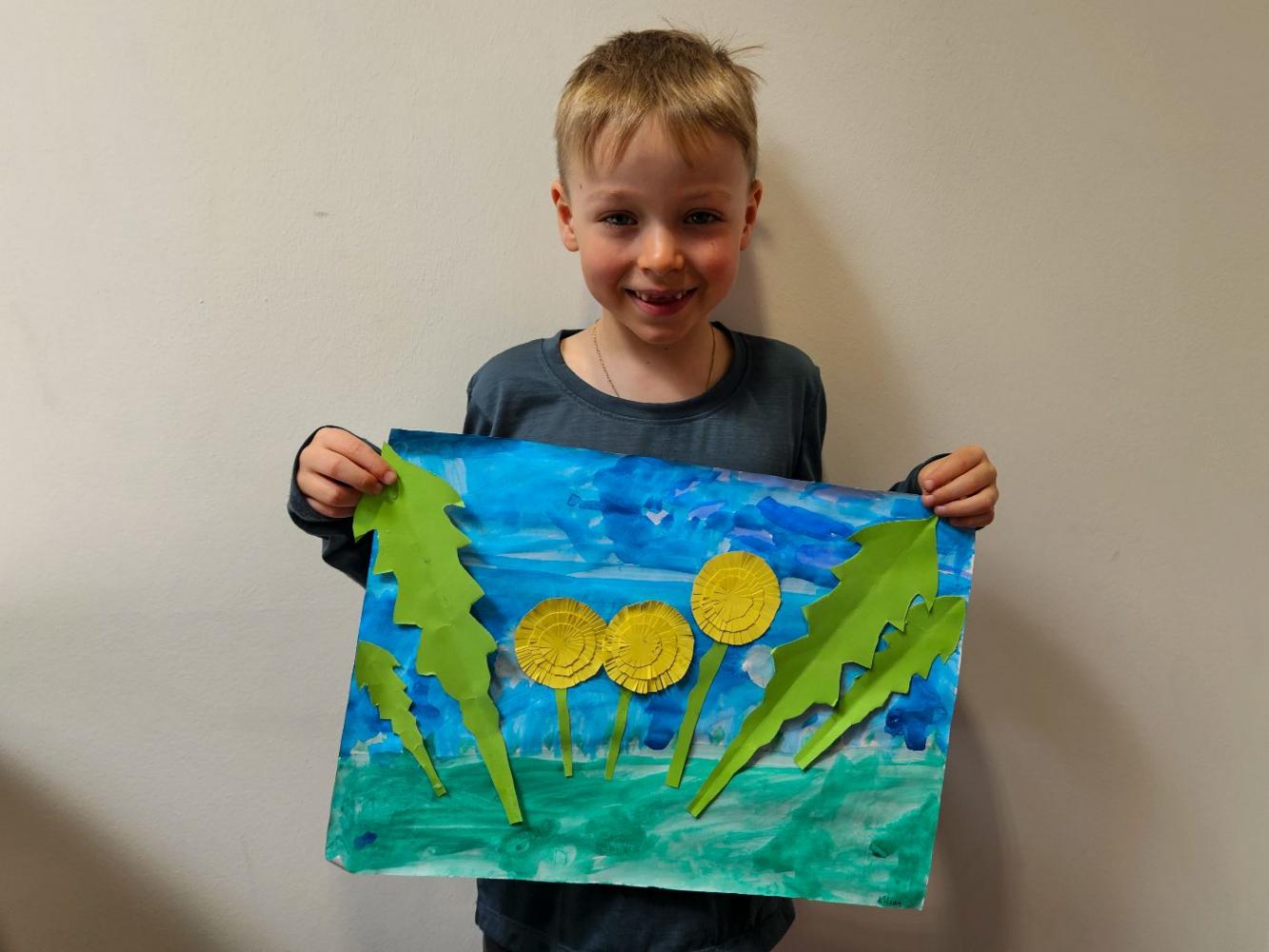 Löwenzahn von Simone Grünauer 30. März 2025 1 2 Mit all unserem erlernten Wissen über Blätter, Stängel, Blüte und Wurzel im Sachunterricht war die kunstvolle Gestaltung der Blume in KUG ein echtes Kinderspiel – und hat allen riesigen Spaß gemacht!
