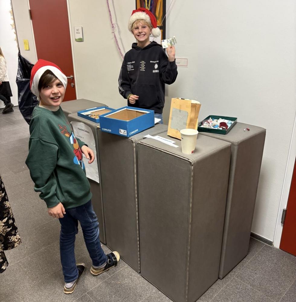 Während des Elternsprechtags übernahmen die Viertklässler motiviert den Verkauf von Kuchen, Kaffee, Büchern und Spielen. Mit großer Freude verkauften sie auch die Lose der Tombola und einige Kinder brachten ihre Musikinstrumente mit und trugen verschiedene Stücke vor.