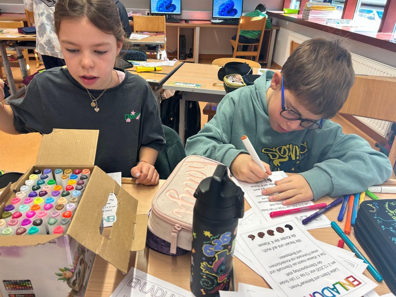 Mit großem Eifer bastelten sie liebevolle Dekorationen sowie kleine Überraschungsgeschenke für die Besucherinnen und Besucher. Außerdem kümmerten sie sich selbstständig um die Organisation von Kuchen, Getränken, Kaffee, Papptellern, Servietten und allem, was für ein gemütliches Café benötigt wird. Auch Preislisten und Einladungen wurden von den Kindern eigenständig gestaltet.