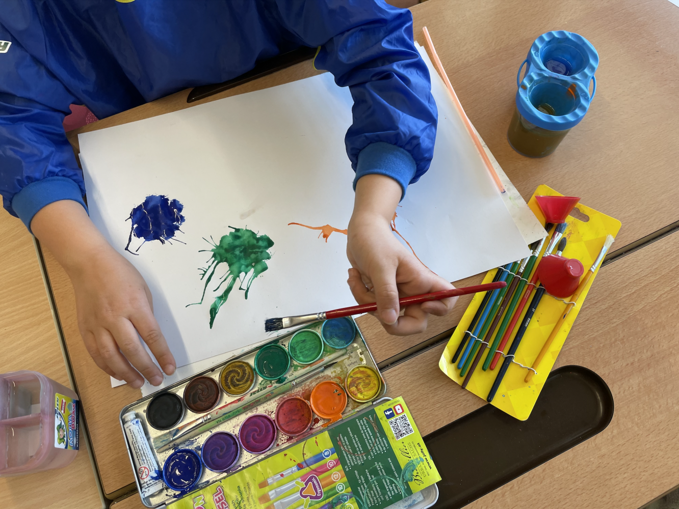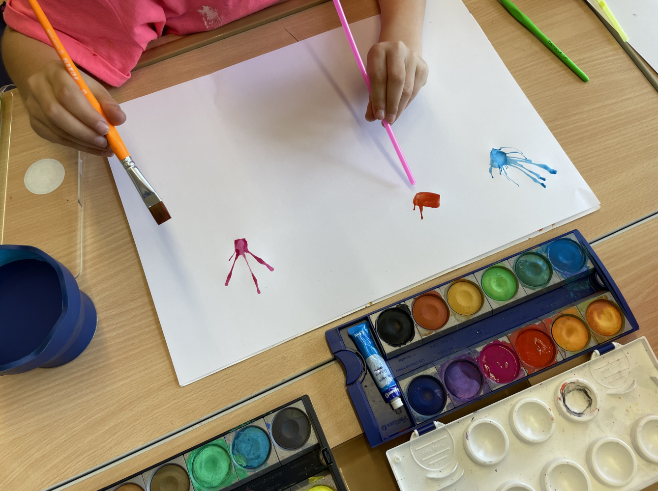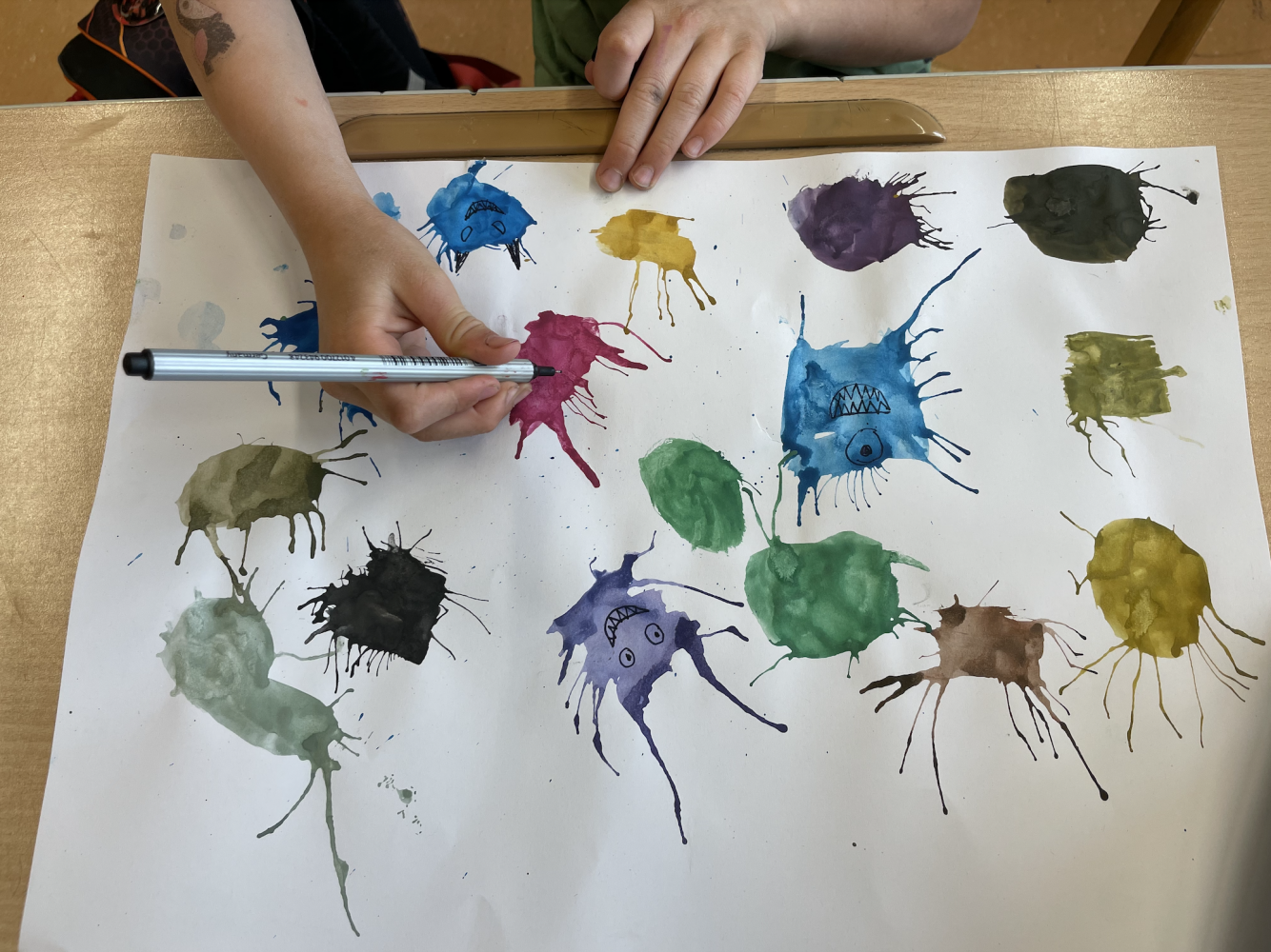 Monsterstarker Unterricht von Lisa Gabl 22. Mai 2024 3 Das Ziel der Unterrichtseinheit war das Kennenlernen der Pustetechnik mit Wasserfarben und Trinkhalmen. Aus den bunten Farbklecksen entstanden verrückte Monsterchen.