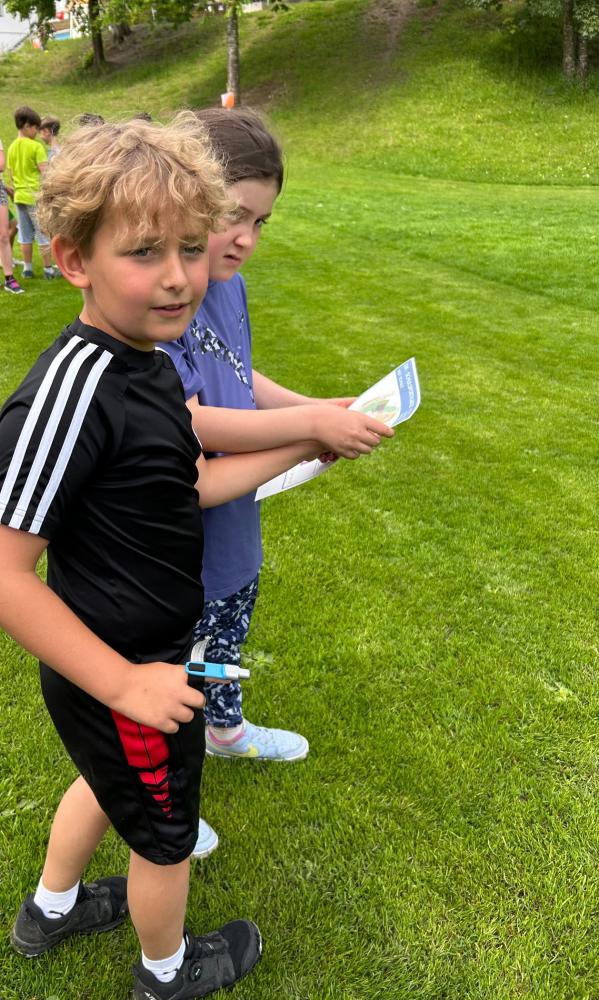 Nach einem Laufspiel zum Aufwärmen und dem Kennenlernen der Geländekarten, durften die Schülerinnen und Schüler selbst aktiv werden und verschiedene Bahnen auf dem Schulgelände absolvieren.
