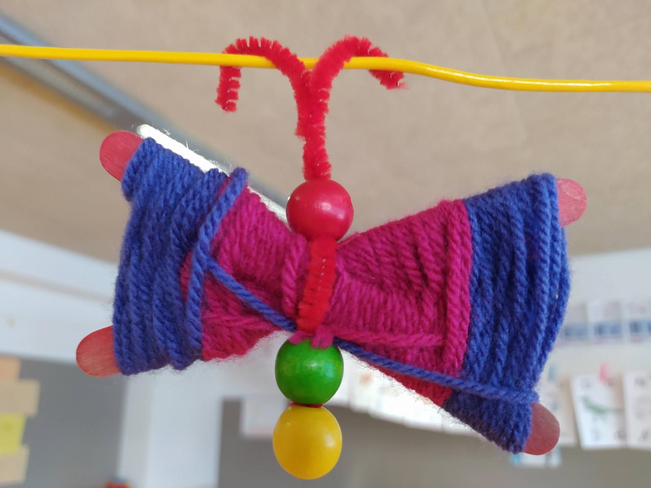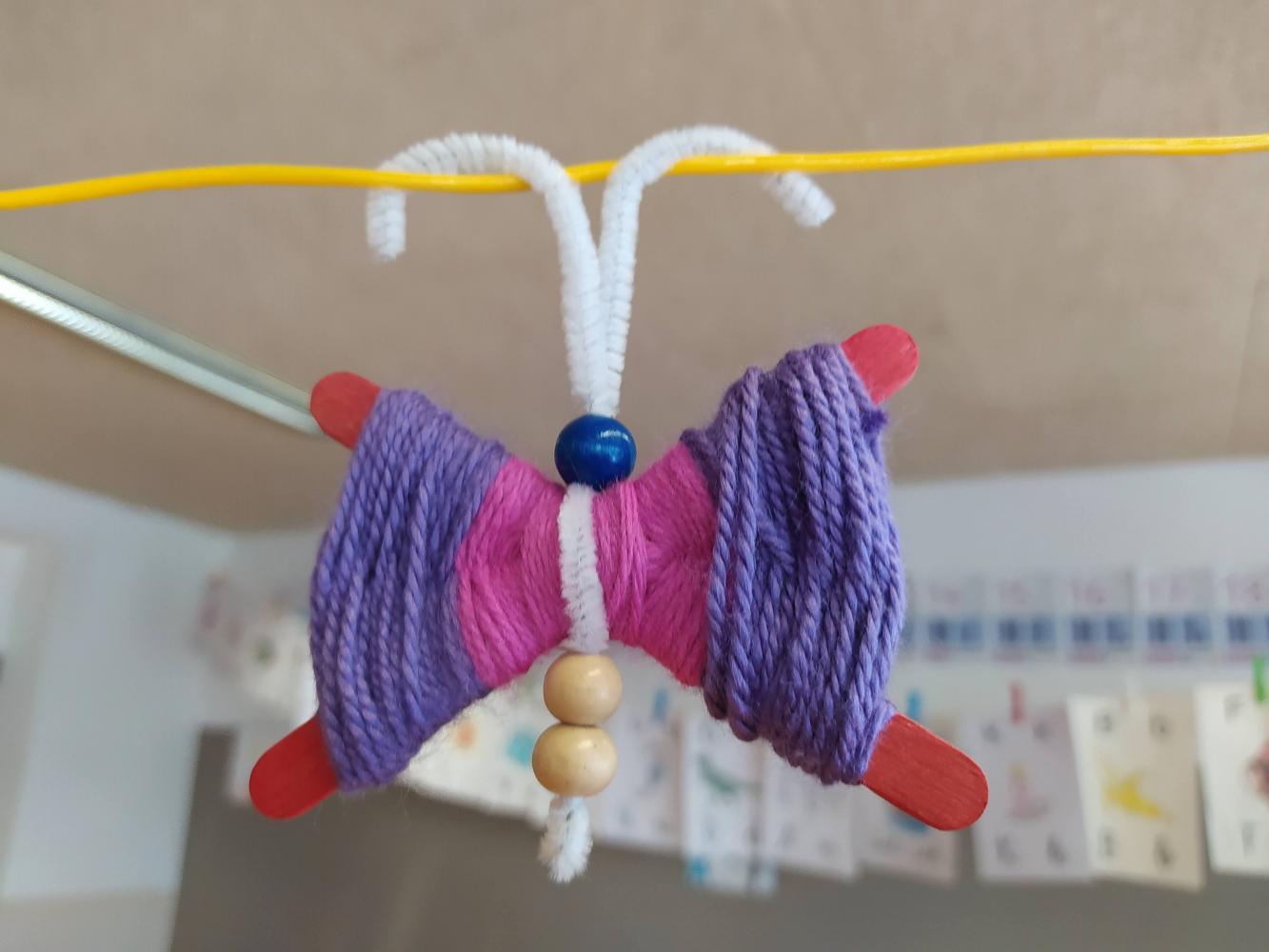 Schmetterlinge aus Wolle von Simon Krabichler 11. Oktober 2021 4 2023/2024 Werkstücke Die Kinder der 2. Klasse gestalteten im Werkunterricht Schmetterlinge aus Eis-Stäbchen und Wolle. Die Ergebnisse können sich sehen lassen!