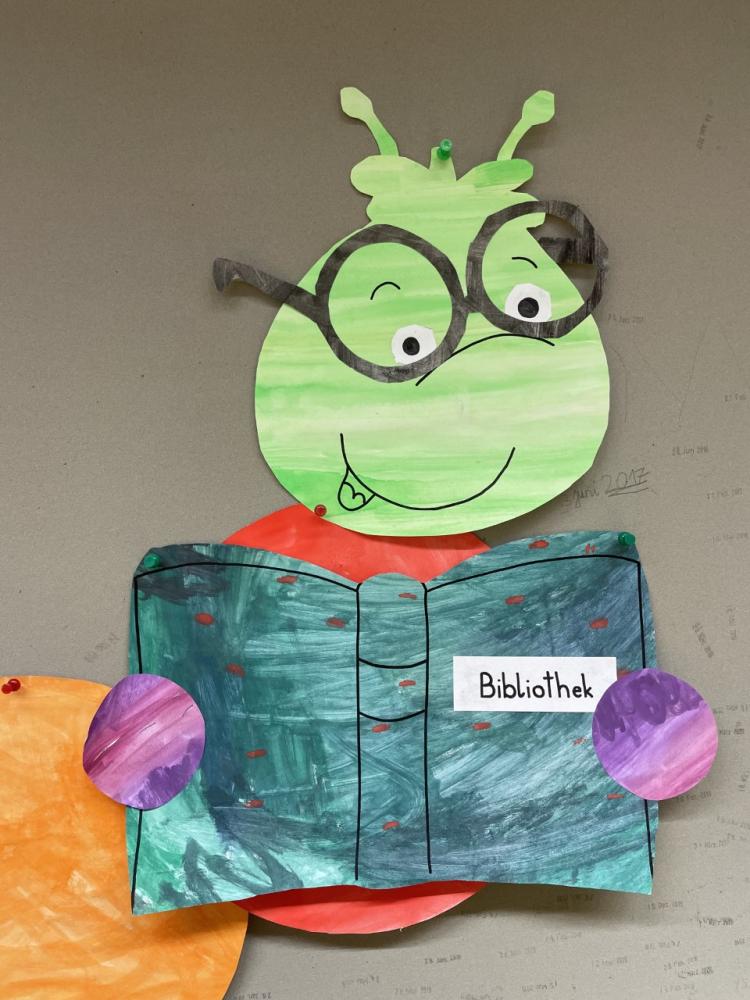 Die Schülerinnen und Schüler der dritten Klasse hatten eine besondere Aufgabe. In Bildnerische Erziehung gestalteten die Kinder in gemeinsamer Arbeit eine Dekoration für unsere Schulbibliothek. Die Leseraupe Willi wird alle Kinder im Schuljahr 2022/2023 beim Durchstöbern und Lesen der zahlreichen Bücher in der Bibliothek begleiten.