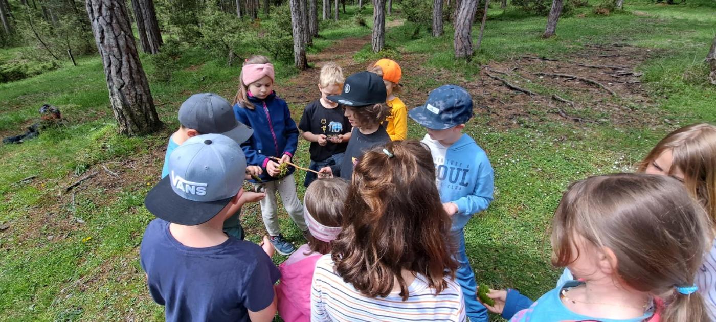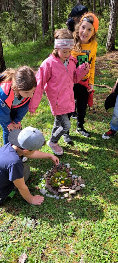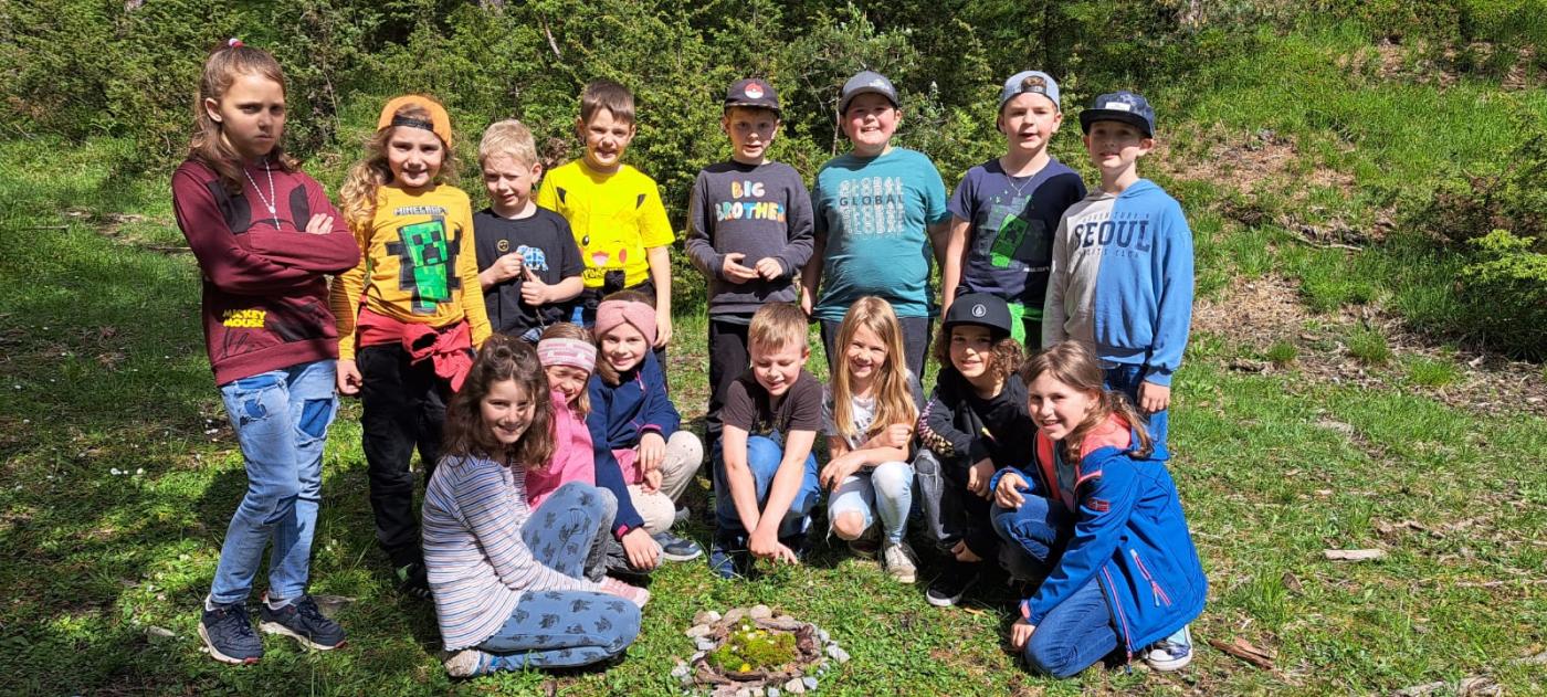 Unterwegs im Wald ... von Christiana Mair 25. Mai 2023 4b 2024/2025 Die 2b Klasse nützte das sonnige Wetter und verlegte die heutige Turnstunde kurzerhand in den Wald!