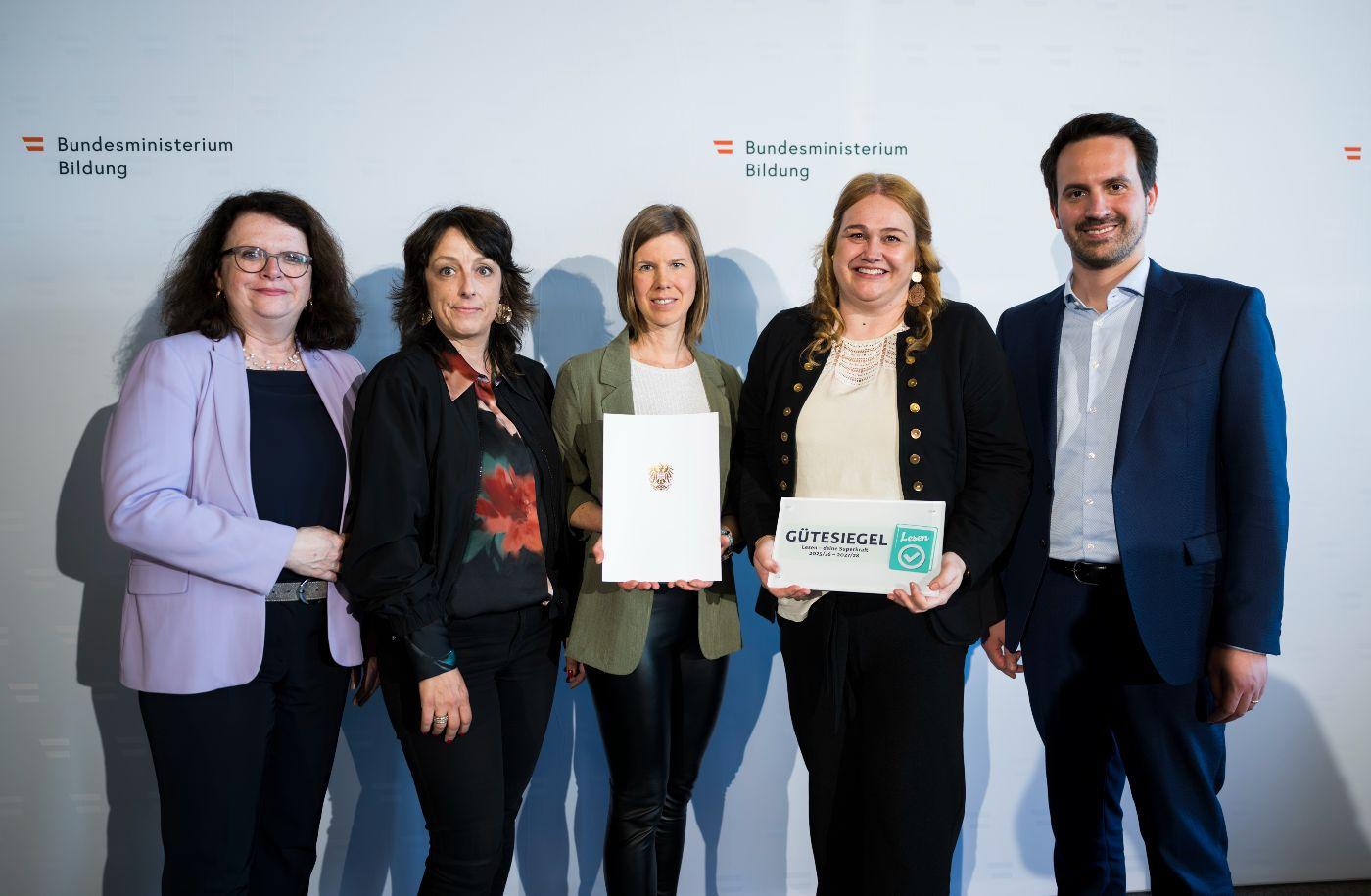 Am 29.4. haben wir in Wien von unserem Bildungsminister Wiederkehr das bundesweite Lesegütesiegel verliehen bekommen.