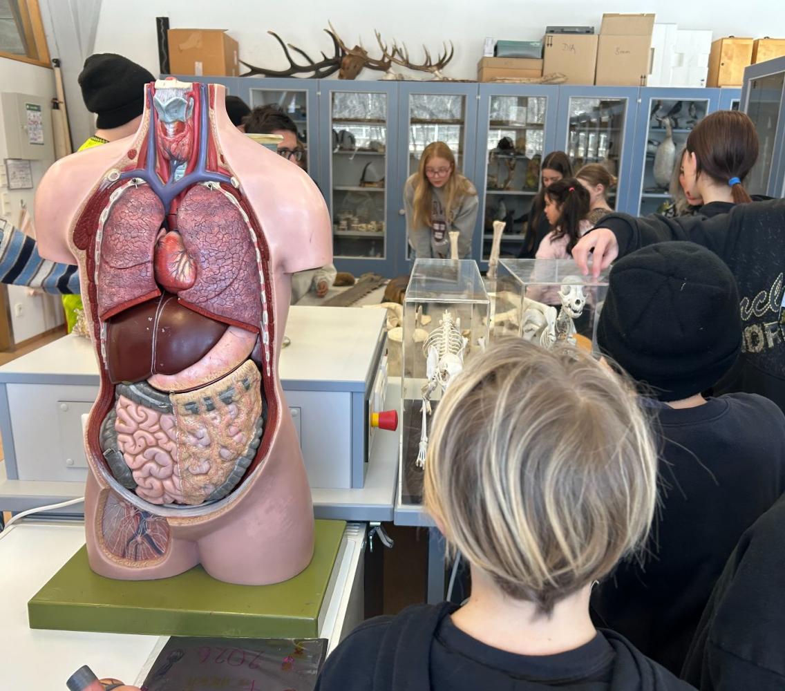 Nach einer kurzen Begrüßung besichtigte die Klasse verschiedene Unterrichtsräume und schnupperte in mehrere Fachbereiche hinein. Besonders interessant waren die Stationen in Musik, Zeichnen, Physik, Biologie, Werken und Informatik. Zum Abschluss führte der Rundgang in den Turnsaal, wo ein Geschicklichkeitsparcours bewältigt werden konnte.